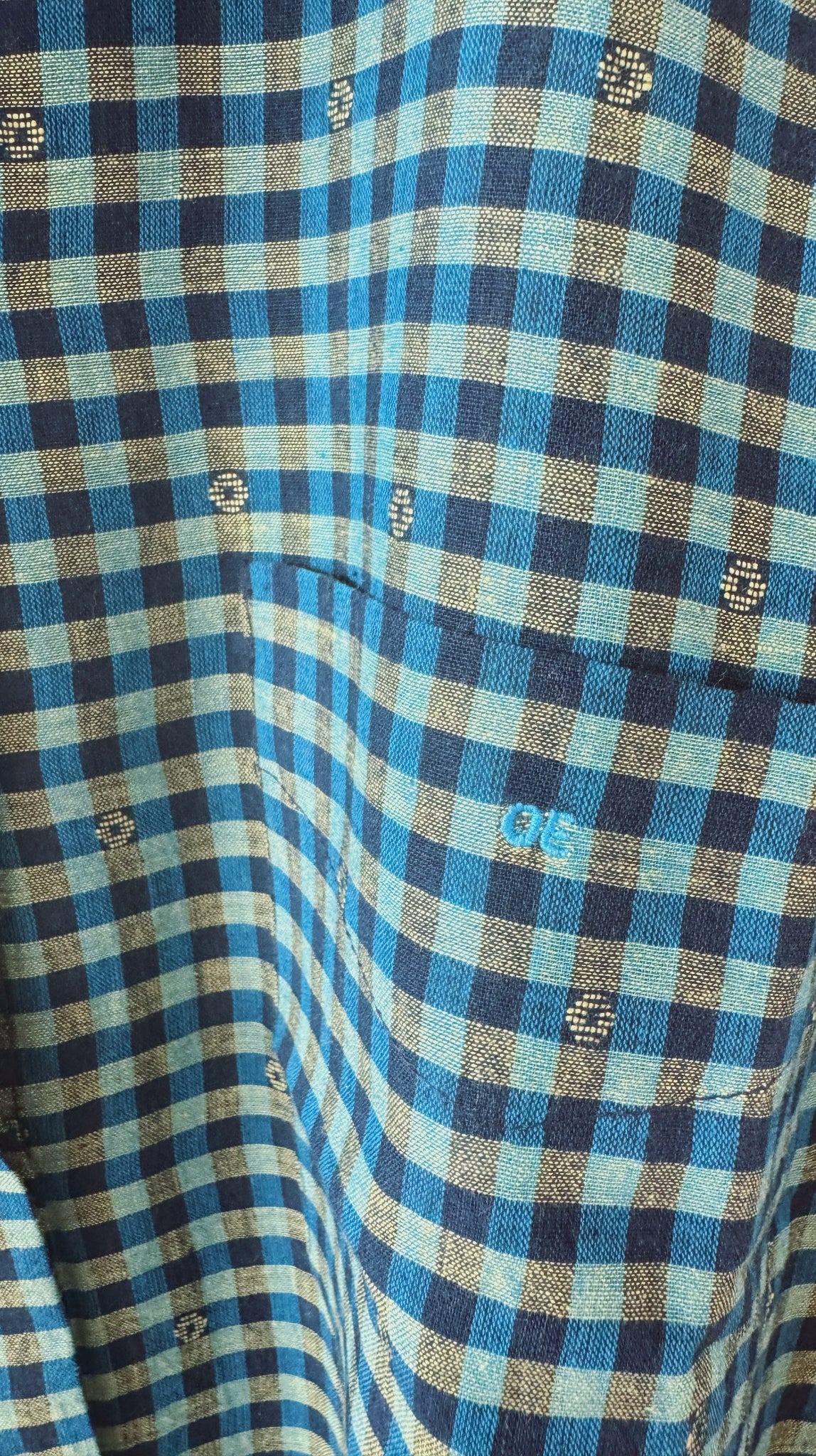 Oversized mens style button down — our must have wardrobe essential. Indian hand loomed cotton, lightweight and delicate. O.E embroidery pocket detail. Only offered in size small (one size fits most)
